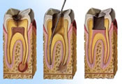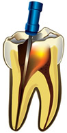 Root Canal, or endodontics, is the process of removing the nerves from the roots of a tooth and filling the space with gutta percha (a rubber material). A root canal is often necessary to save an abscessed or infected tooth. If an infected tooth is left alone for a long period of time, an abscess can form. An abscess will show up on an x-ray as a dark spot below the apex of the root. This is actually bone loss in the jaw. It is very important to catch this problem before it deteriorates too far and more bone is lost.